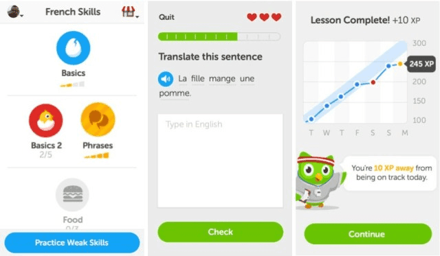 Setiap hari, ada target tertentu untukmu dan harus terpenuhi untuk get the achievement. Nah kalo sudah merasa bisa ada ujian untuk melompat ke level selanjutnya gitu. Lebih cepat belajar, lebih cepat bisa. Biasanya, kalo les secara formal kan memakan biaya dan menghabiskan uang, Kalo lewat Duolingo, setiap tes itu biasanya hanya memakan waktu 5 menit kalo kamu lebih cepat ya bisa 2-3 menit sudah selesai.