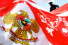 - Warna keemasan pada burung Garuda melambangkan keagungan dan kejayaan.